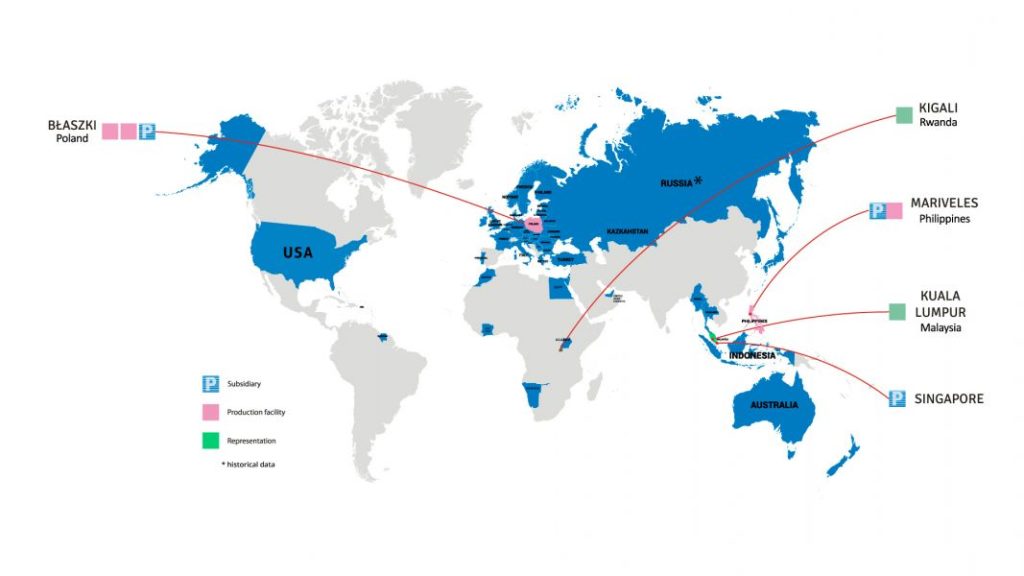 Geosynthetic products manufactured by the Pietrucha Group are distributed in 34 countries on 5 continents, especially in regions sensitive to the impact of climate change. Export constitutes over 50 percent of the Group’s activity.