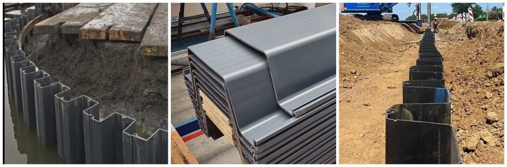 As mentioned above we source both economy plastic sheet piling and heavy duty U vinyl sheet piles and Z PVC Piles.  Including the brand new FRP PVC Sheet pile, THE SuperLock. These are available with a full range of accessories products, including 4 way connectors, corner piles and capping beams.