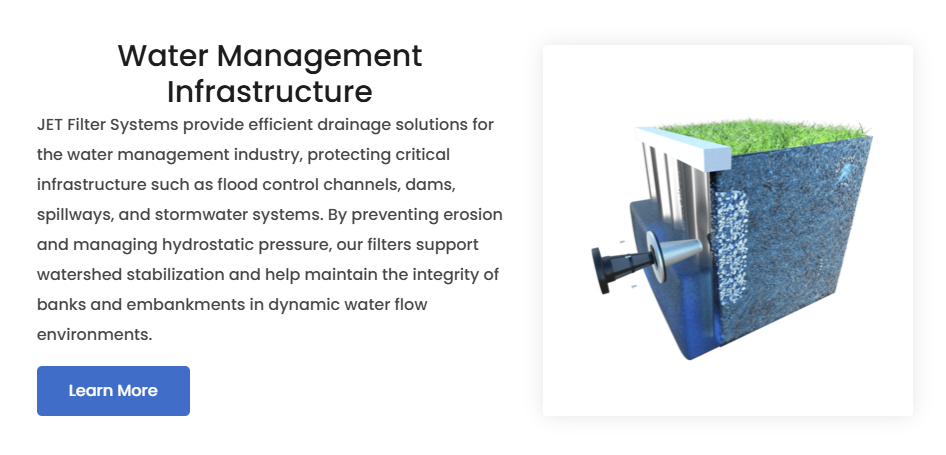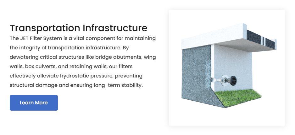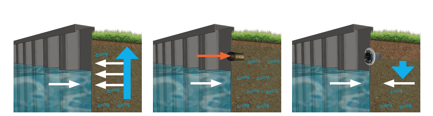 Within retaining applications specifically steel sheet piling, adding and maintaining JET Filters will likely reduce the over engineering of the design, saving money on using a lighter steel sheet pile.