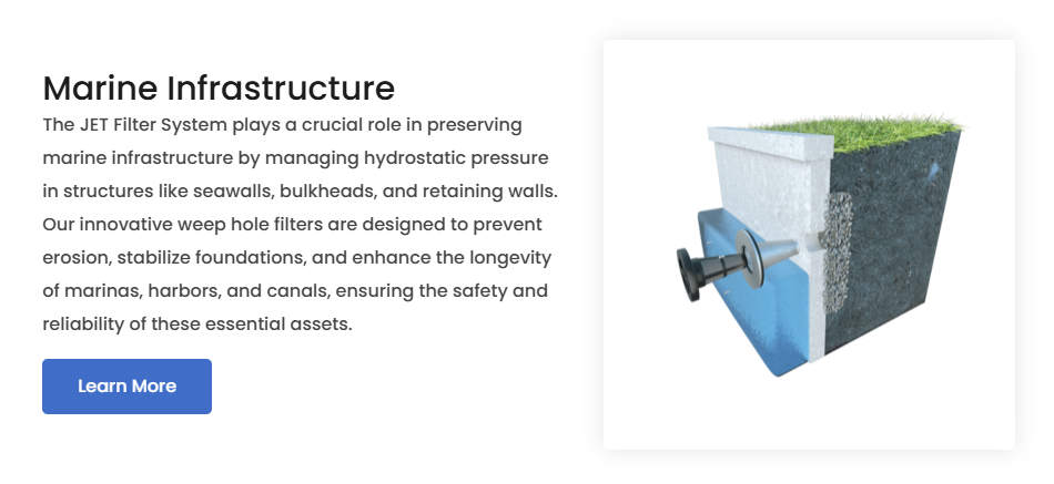 Our comprehensive range of product solutions are designed to support and enhance the stability and longevity of new and existing retaining structures across various applications – including Marine InfrastructureTransportation Infrastructure, and Water Management Systems. From innovative weep hole filter systems that improve drainage efficiency to advanced erosion control measures, our products are engineered to meet the highest standards of durability and performance.
