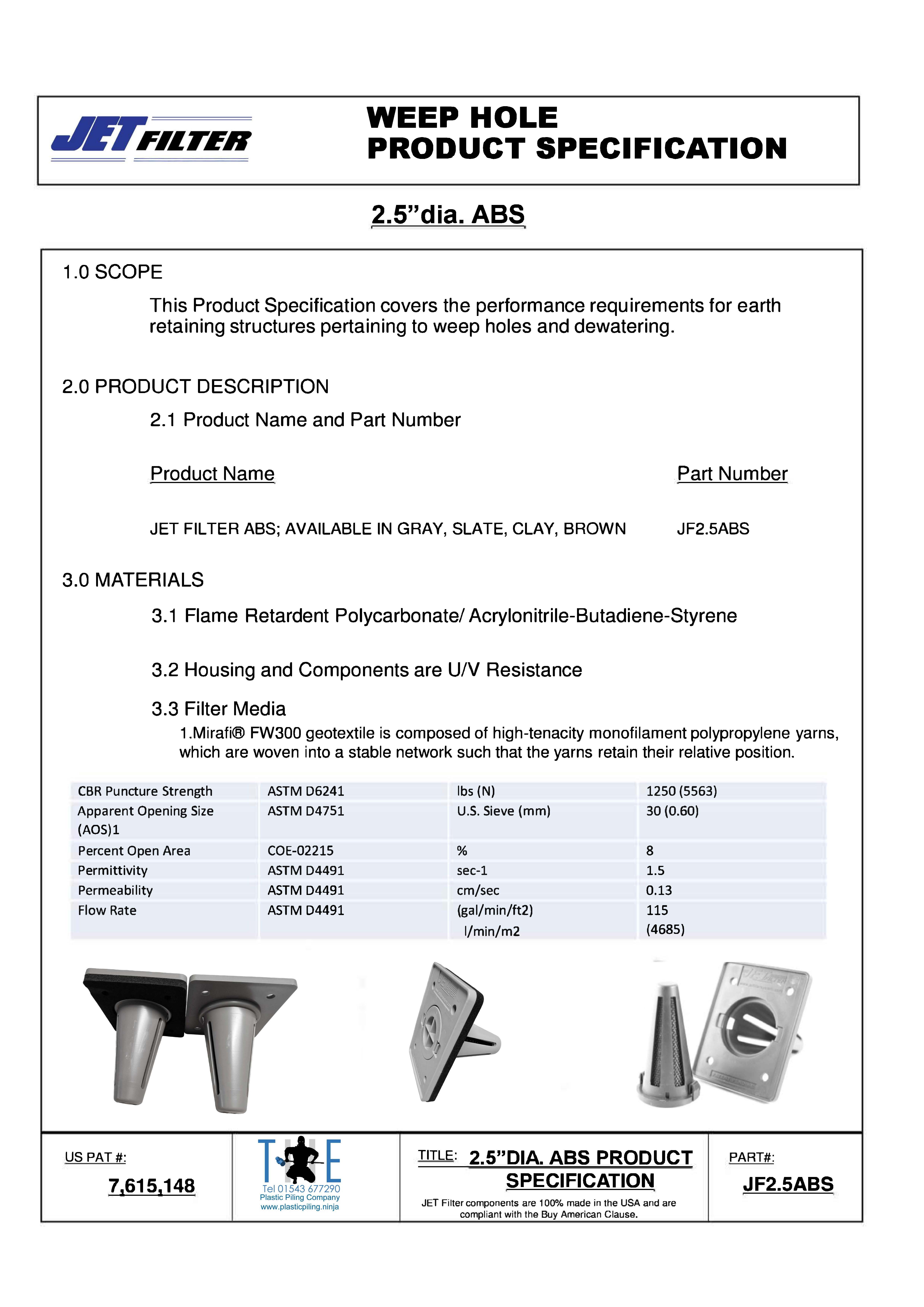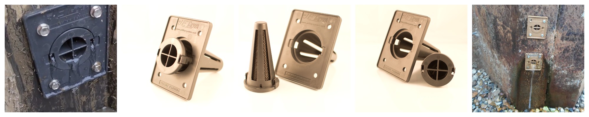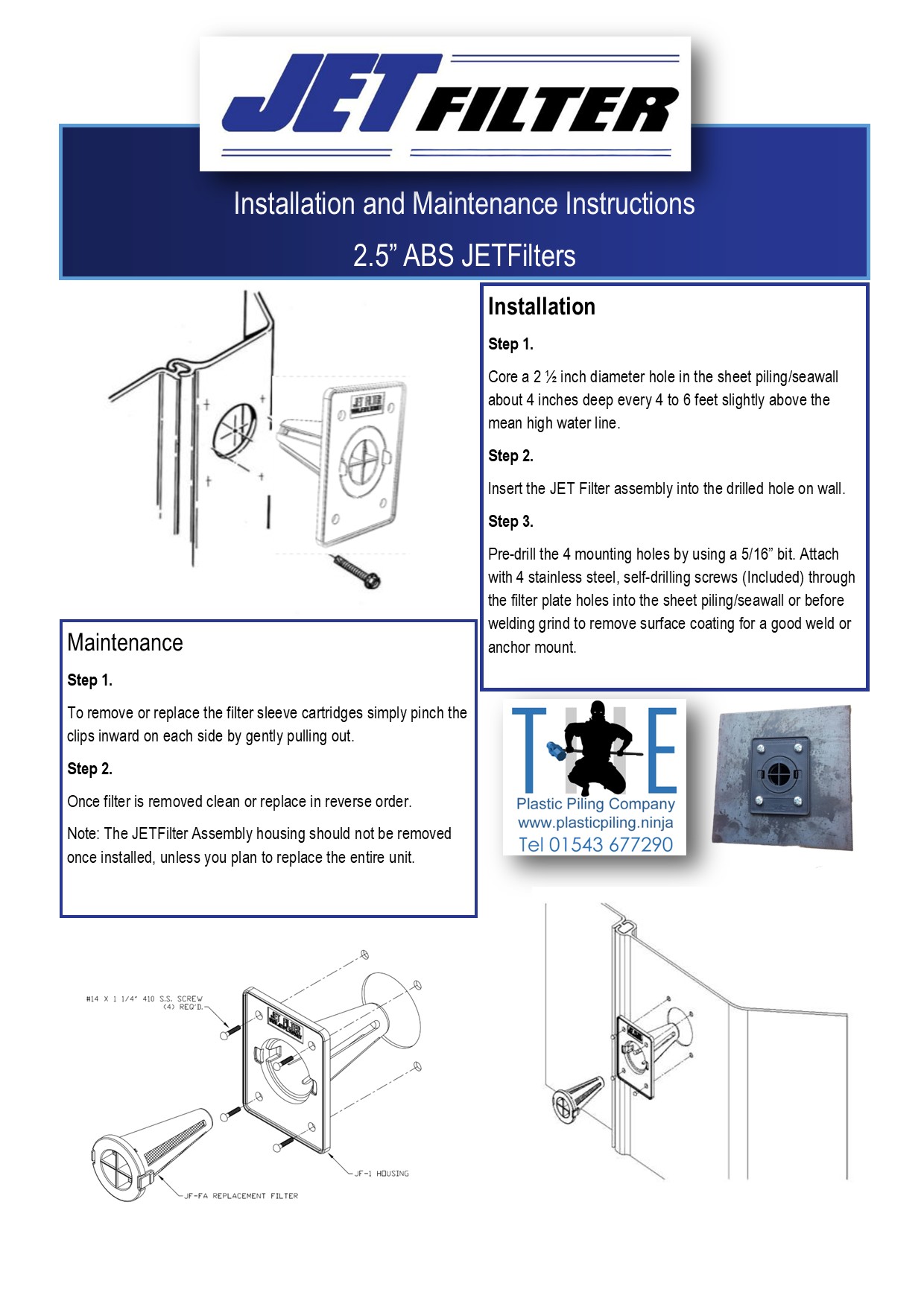 The above left stainless steel drill tip hex head screws are typically provided with the 2.5 inch ABS JET Filter. These are aimed at use with plastic or aluminium sheet piling. They aren’t suitable for use with steel piling and as such we provide the BTS Hex head 316 Stainless Ceramic Coated Masonry screws, on thr right top, if the 2.5ABS are to be used with steel piling.