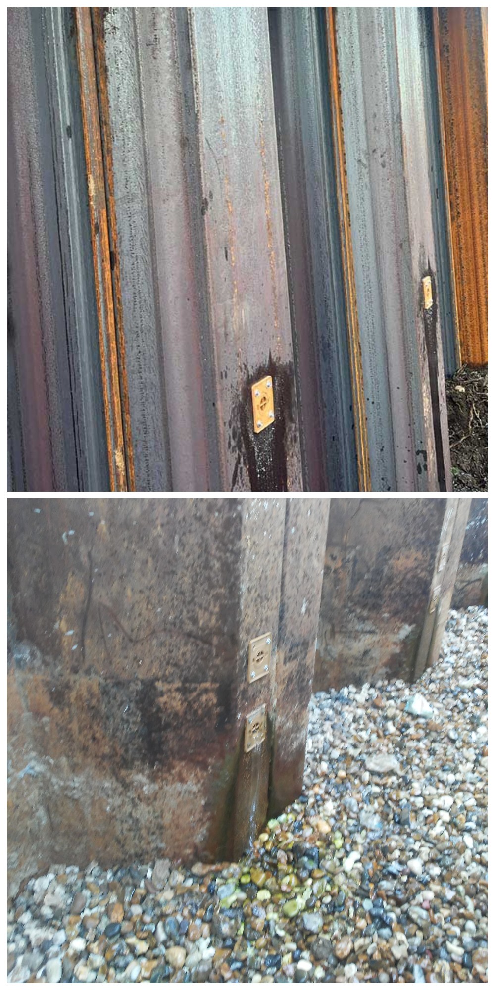 The BTS screws are 316 Stainless steel and whilst considered a masonry/concrete screw are tried and tested over many years and are suitable for steel sheet piling. The ceramic coating on these screws reduces the chance of dielectric corrosion.