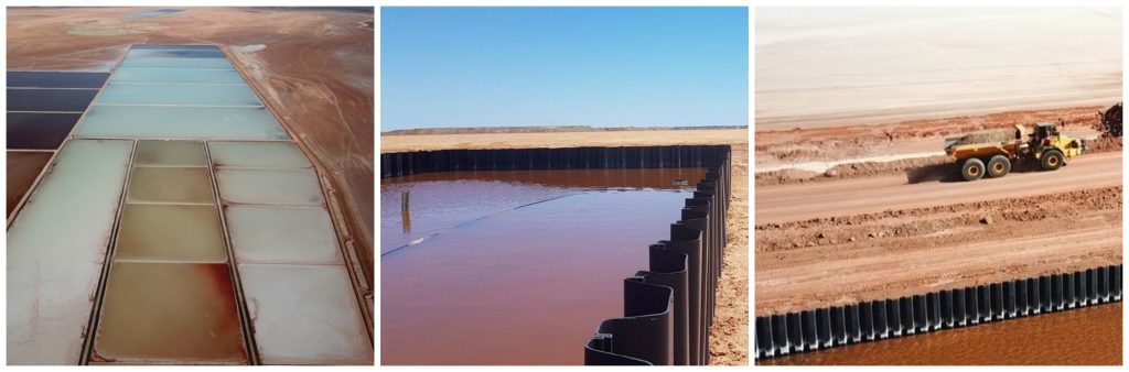 • PVC, like many plastic materials can exhibit performance changes under extreme temperature conditions.  Becoming brittle in very cold climates or there may be issues of softening in hot temperatures. One of the benefits of the UK is that we dont tend to experience the extremes where this would be an issue.  For example plastic piling is used in Africa, the Carribean and Australia.  All so much harsher and hotter environments than the UK.  The example below showing salt ponds in Australia.  When entering winter, we simply tell customers to take more care during installation, as the sheet pile would be exposed to much higher forces during installation, than in situ.