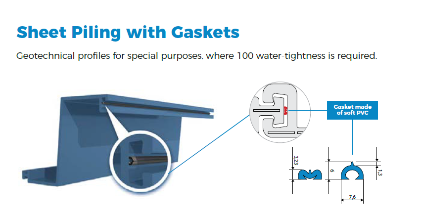 The superior watertightness of plastic sheet piling enables it to compete favourable, both in terms of performance and cost to hot rolled steel piles.  The technology of vinyl sheet piles with an integrated gasket is used primarily in projects where extremely high tightness is required.