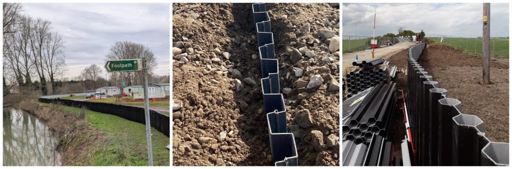 Plastic Piling offers excellent watertightness and so it is used in a wide range flood management schemes, crest and bund elevations, cut off walls, flood fences, wetland restoration.
