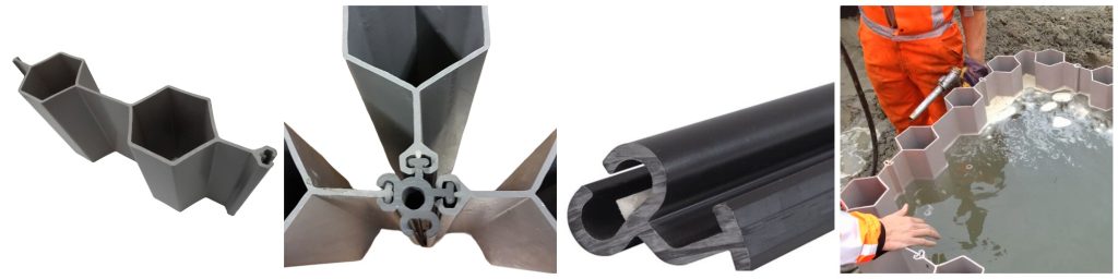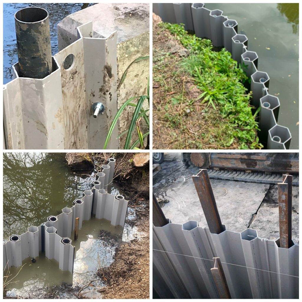 You likely will have seen many photos of MultiLock® as a hybrid, that is when used in conjunction with posts or tubes driven inside, this is discussed more below. What is important to stress is that MultiLock® is equally as popular used on its own, the Hex designs providing incredible rigidity over older standard Z plastic piling.