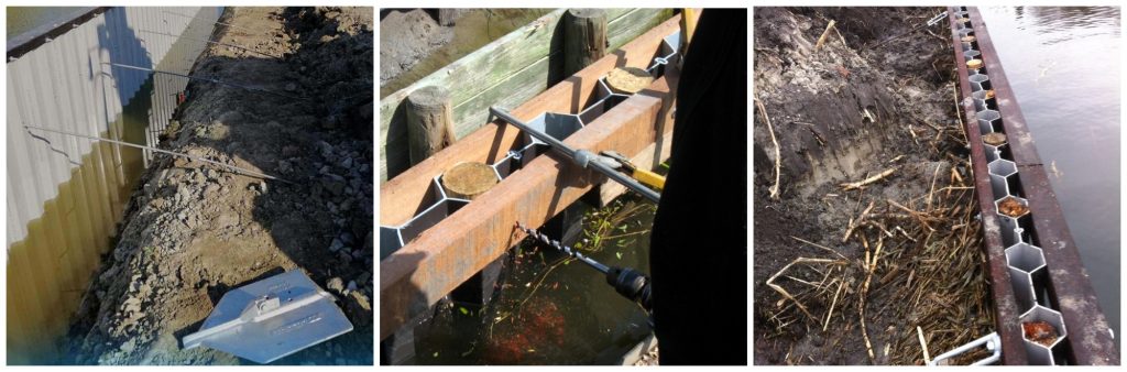 MultiLock® plastic sheet pilings true versatility is shown when used in conjunction with wooden posts, steel tubes, scaffold tubes, bamboo tubes, steel I beams. and most recently Dywidag ground anchors.