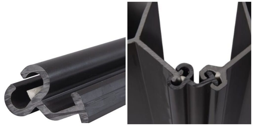 MultiLock® plastic piling was the first plastic sheet pile, worldwide, to offer a new sheet pile design. The hexagonal tubular construction provides a exceptionally high level of rigidity for a plastic sheet pile.  This advanced design enables the use of much more powerful equipment, than conventional older designs of similar strength.  Having enough pile driving power to overcome the ground resistance can be the difference between a successful installation or a struggle.