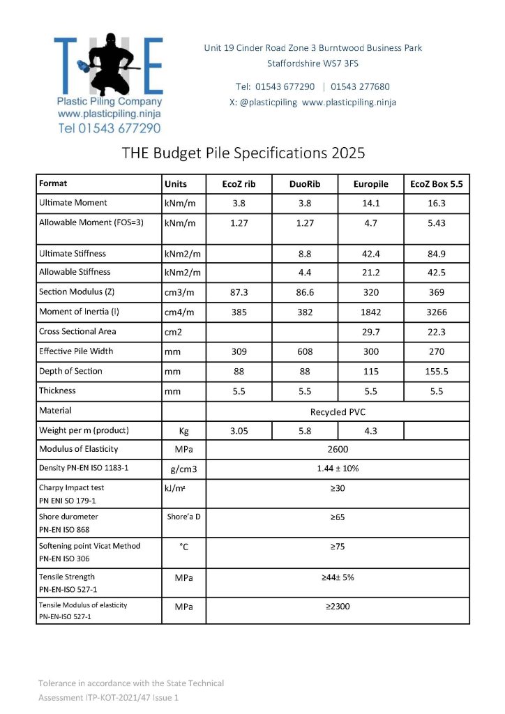 The Budget range of Plastic sheet piling includes the EcoZ Standard Z pile, The DuoRib and The Europile. The EcoZ Standard Z Sheet pile represents our version of the original plastic pile design, that was introduced into the UK around 30 years ago now.