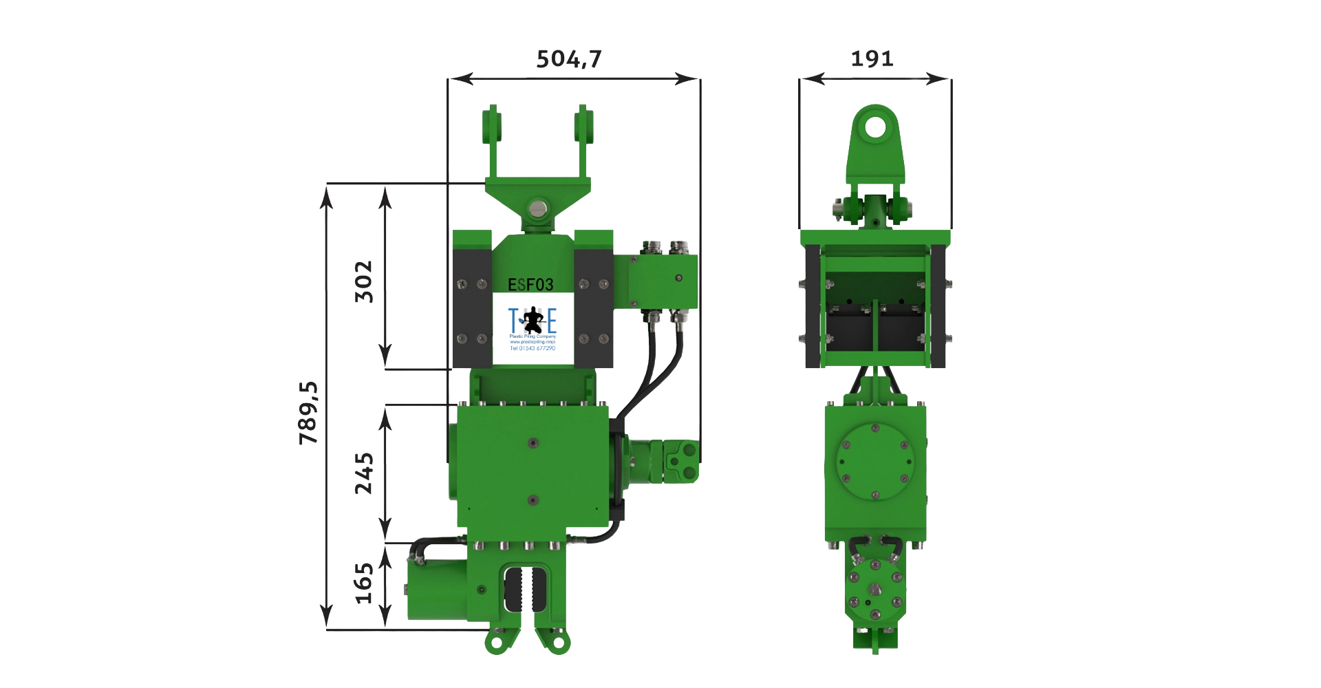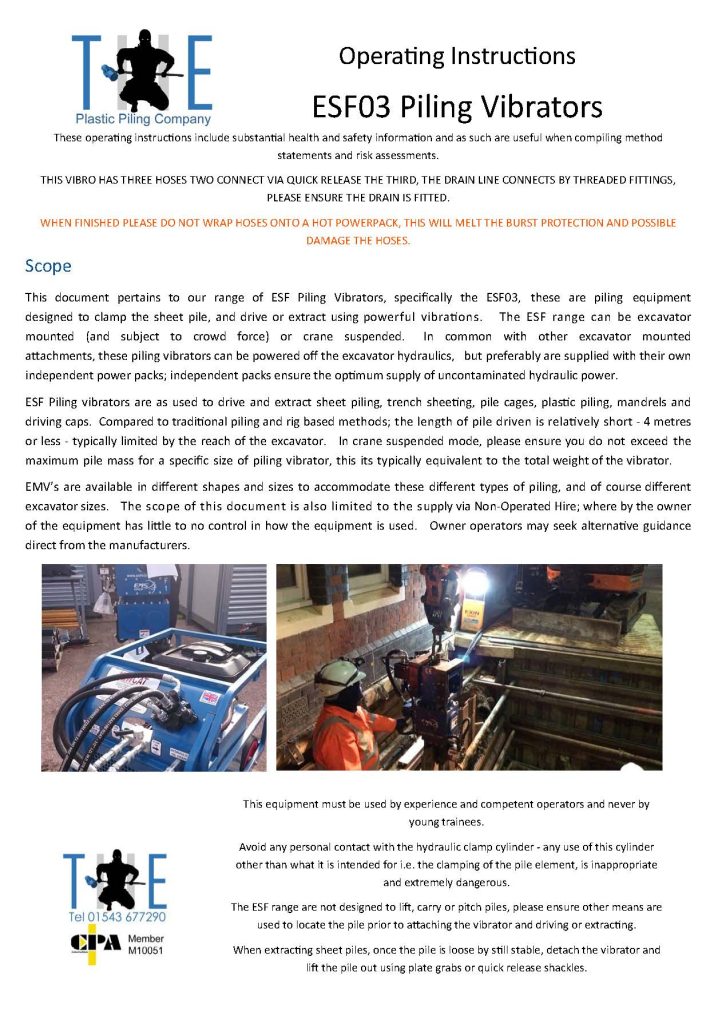 The ESF03 is very popular for driving trench sheeting and plastic sheet piling. It weighs 190 kgs with ballast weights, and the powerpack only weighs around 140 kgs, but features handles and rear wheels. So both items are easily handled with small equipment.