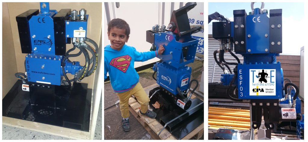 THE ESF03 is a small piling vibrator, in fact the worlds smallest piling vibrator. We had it designed so that it would be used in a suspended mode and powered of a separate small petrol 30-40 lpm hydraulic powerpack.