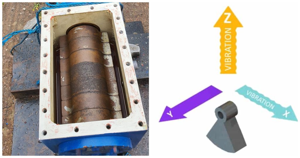 Most piling vibrators have two eccentric weights which are geared to spin in opposite directions, or multiples of two. This cancels out the vibration in all axis except the vertical focusing the vibrator force up and down.